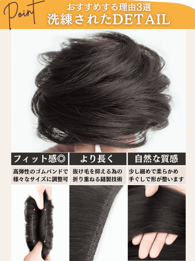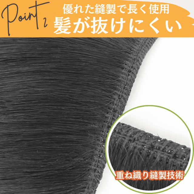 ゴムバンドは優れた弾力性がありウィッグのズレを無くし、より快適なウィッグ生活に 重ね織り縫製技術で髪の毛が抜けにくくより長く使用 |