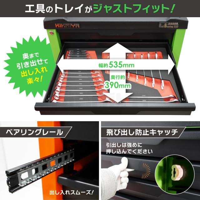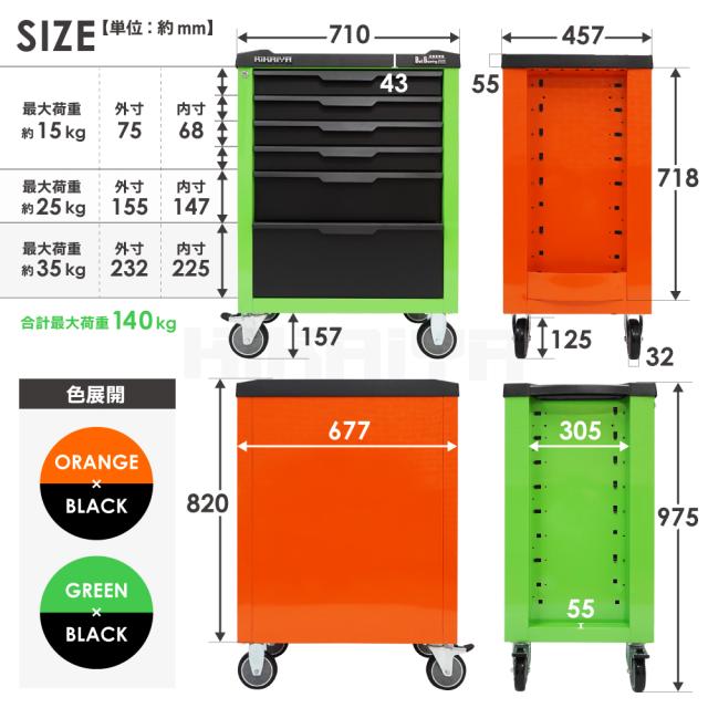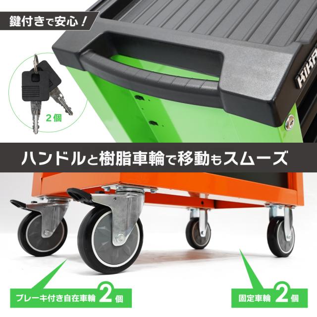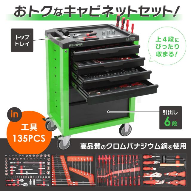 【セットでおトク】 ローラーキャビネット 6段 工具 135PCS セット キャビネット+ツールセット オレンジ×ブラック グリーン×ブラック ツールボックス ワゴン 工具箱 KIKAIYA