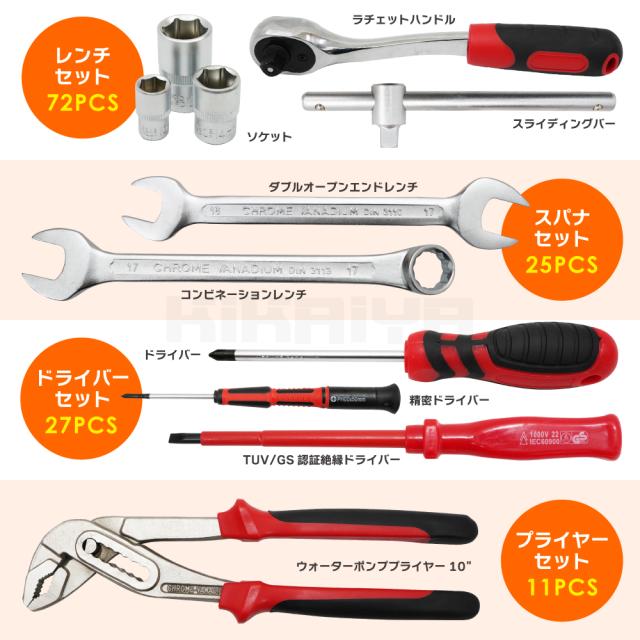 | 材質 | キャビネット本体:スチール キャビネットトップトレイ:樹脂 工具セット:主にクロムバナジウム鋼 |