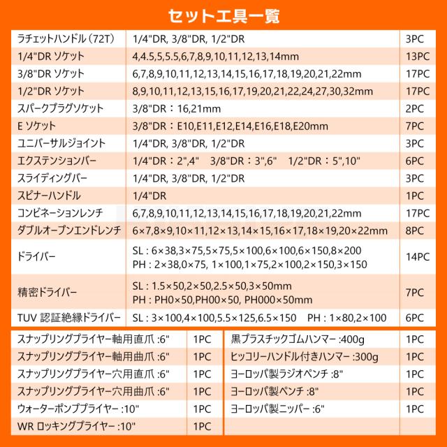| ローラーキャビネット6段(TBD-6) | 工具セット135PCS(SET-GJ135) |