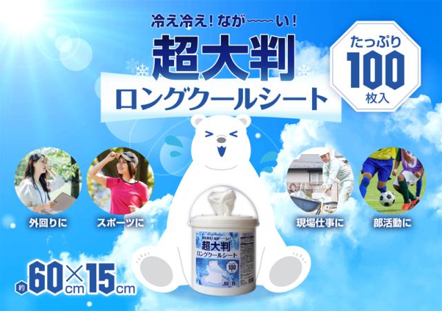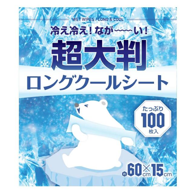 使い捨て 超ロング クールタオル 100枚入 1個 特大サイズ ラージサイズ 60×15cm 超大判 ロング クールシート ひんやり 冷感 冷却タオル 防災用品 アウトドア レジャー 工事現場 暑さ対策 熱中症 対策 汗 体拭き 60cmの特大サイズ【沖縄県除き送料無料】 agesugi_snk