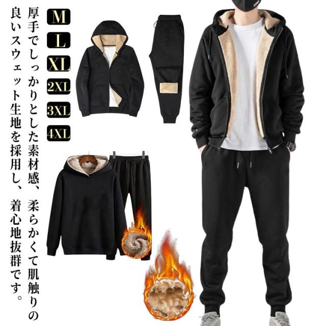 レディース メンズ ジャージ セット ボア スウェットパンツ トレーナー スウェット 上下 ジップパーカー セットアップ M-4XL 長袖 秋冬 暖か M-4XL プルオーバー 2タイプ パーカー パンツ ジャージ スエット 部屋着 ブラック お家 普段