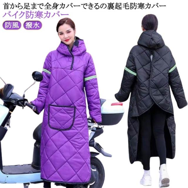| 首から足まで全身カバーできるの裏起毛防寒カバー。バイク防寒カバー 防寒カバーの外側の生地は防水性があり、裾は膝を寒さから守るのに十分な長さです。 内側にはもこもこのフリース素材を使用し、ソフトな感触と保温性を高めています。 首から足首までをフルカバーするデザインで、全方向からの冷たい強風を軽減しますので、寒さが苦手な方にも最適です。 防寒カバーの両袖に反射バー付きで、夜間に被視認性を高めるので、により安心に走行します。 大きなポケットは物を運ぶのに便利です。 | |