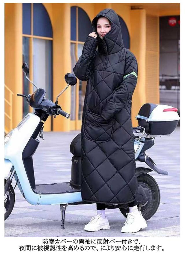 フード付き スクーター専用 バイク防寒カバー 防風 防寒対策 ロングコート バイク用 汎用 ウォームカバー 保温 足カバー 撥水 防寒 全身カバー レディース メンズ 着る布団 着る毛布 裏起毛 キルティング ポケット付き バイク防寒カバー 通学 通勤