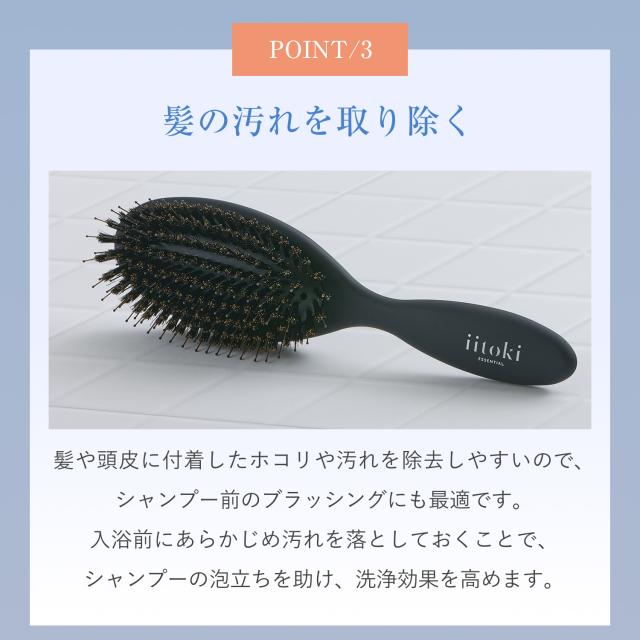 天然の豚毛は帯電しにくい素材のため、静電気が発生しにくく、静電気による髪ダメージも軽減できます。