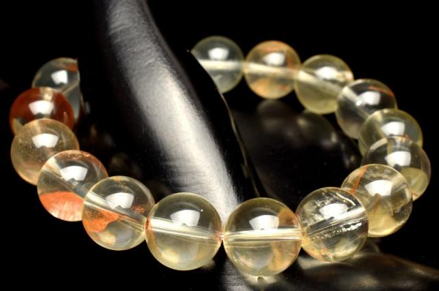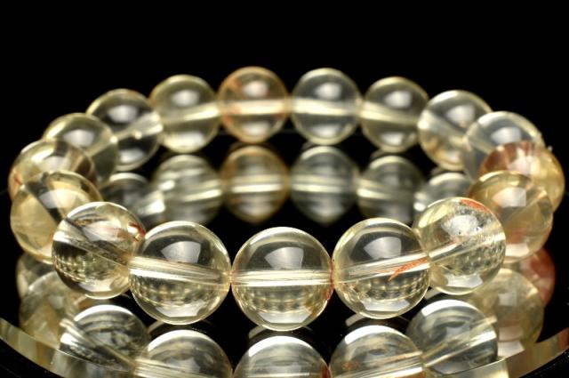 | 特徴・意味 | 淡いイエローのレモンクォーツに赤褐色のライモナイトが共生したレアなタイプです。 近年人気上昇中のレモンクォーツブレスレットですのでおすすめです。 レモンクォーツは、和名を硫黄水晶といい、水晶に硫黄が混入して黄色く発色した水晶です。 シトリンよりも淡いイエローカラー、ローズクォーツなどと同様の水晶の変色種に当たります。 シトリンは水晶に鉄分が含有し黄色く発色するのに対し、レモンクォーツは硫黄を含有し黄色く発色します。 一般的に流通しているレモンクォーツは、スモーキークォーツに放射線処理をして黄色く変色させています。 |