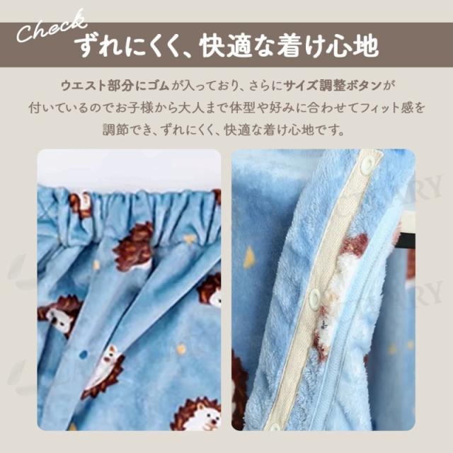 お子様にもおすすめです。お昼寝やベビーカーに。ウェスト部分のゴムとボタンで、ずれにくく安心です。
