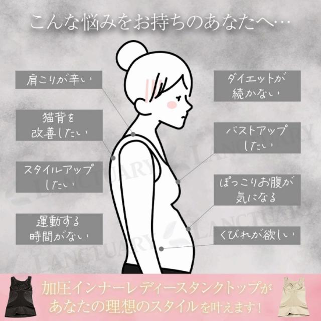 加圧インナーレディースタンクトップ 補正下着 着圧 タンクトップ インナー 姿勢矯正 猫背 くびれ ダイエット シェイプアップ バストアップ ボディシェイパー agesugi_sfa