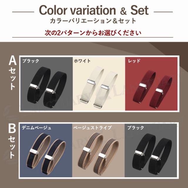 | 主な仕様 | 材質:ポリエステル サイズ:幅2cm/長さ32cm 腕周り:22~50cmに対応 カラー:黒・白・赤・デニムベージュ、ベージュストライプ、コーヒー |