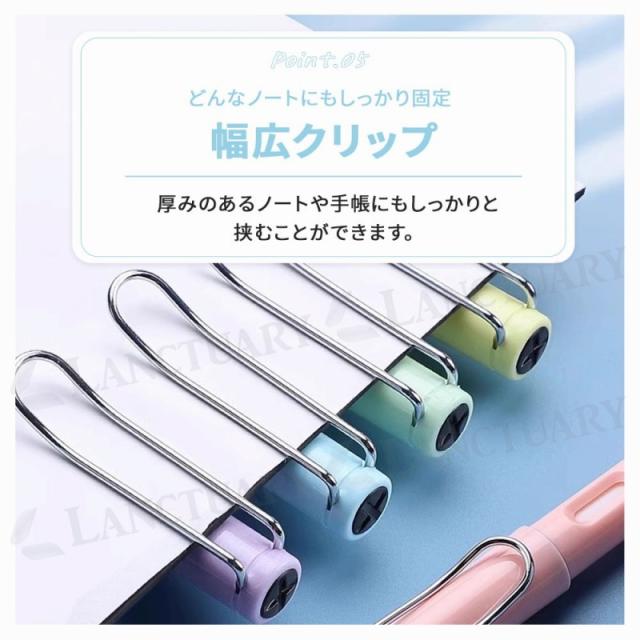 人間工学に基づいた設計で、長時間使っても疲れにくい。自然と正しい持ち方が身につきます。幅広クリップで、厚いノートにも挟めます。学生から大人まで、どんなシーンにも合います。10色のセットで、用途に合わせて使い分けられます。
