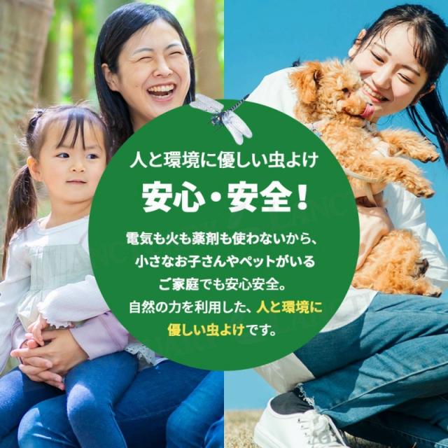 今回は、お得な2点セットをご用意しました。ご家族で1つずつ、または玄関とベランダなど、別の場所に設置すれば、虫よけ効果もアップするのでおすすめです。