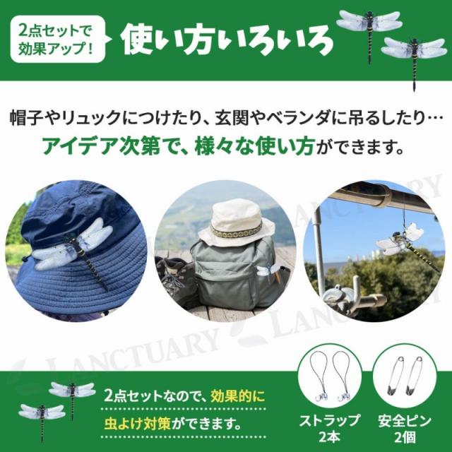 虫よけオニヤンマ 2点セット アウトドア キャンプ 釣り 登山 ゴルフ ベランダ 玄関 帽子 リュック 安全ピン ストラップ 虫除け 安心安全 散歩 ガーデニング agesugi_snk