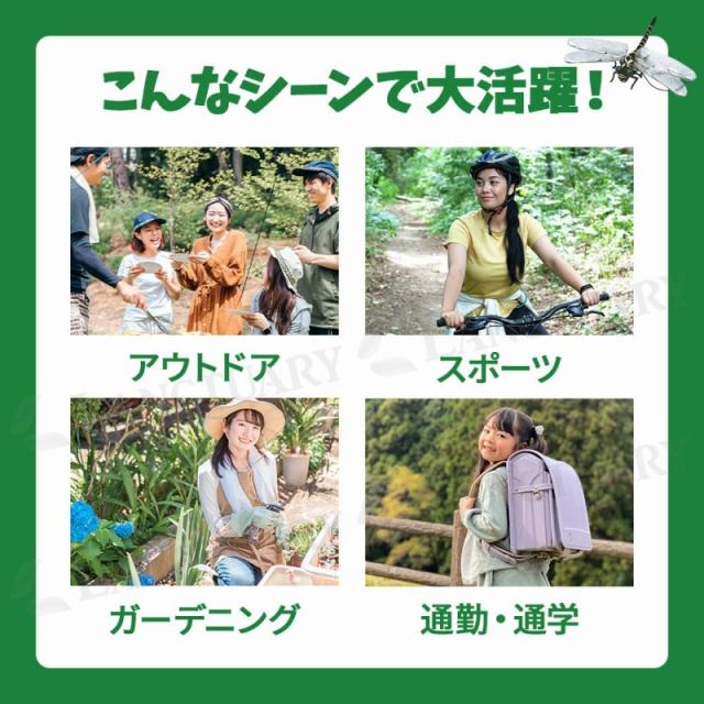 帽子やリュックにつけたり、玄関やベランダに吊るすだけでOK。キャンプや釣り、庭仕事、散歩など、様々なシーンで活躍します。