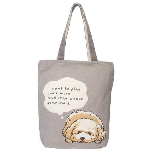 「トートバッグ ファスナー付きキャンバストート おねむプードル マロン かわいい グッズ メール便可」