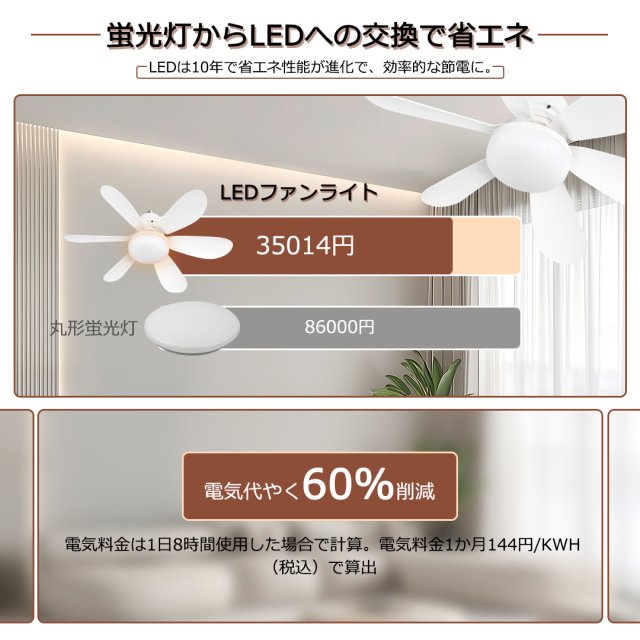 ●高効率のLED技術により、エネルギーを節約し、電気代を削減できます。