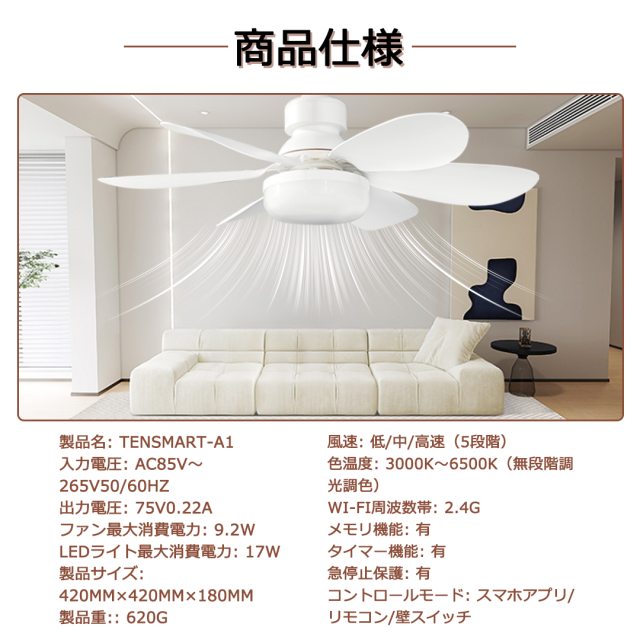 商品名:スマート シーリングファンライト LED 調光調色 風量調節