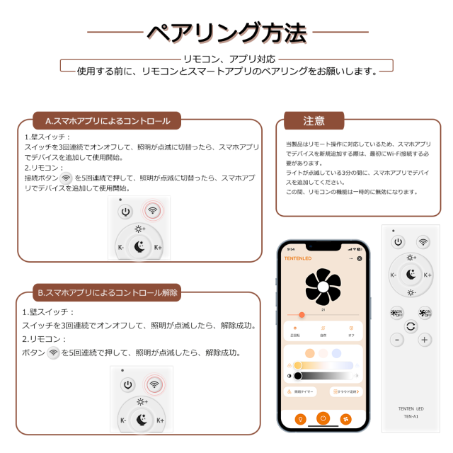 コントロールモード:スマホアプリ/リモコン/壁スイッチ
