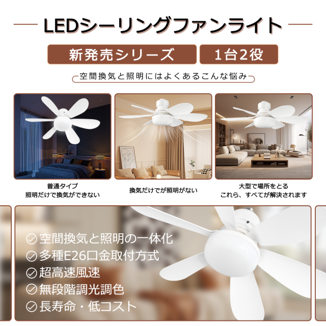 - LEDファンライトは「ファン」と「LEDライト」を組み合わせたシーリングファンライトです。天井に設置することで風と光をお届け!循環効率がアップし、足元に置かないので邪魔にならず小さなお子様やペットがいるご家庭に最適!お部屋の空気をしっかり循環し、温度差を解消する同時、居心地の良い雰囲気を作り出す快適に。