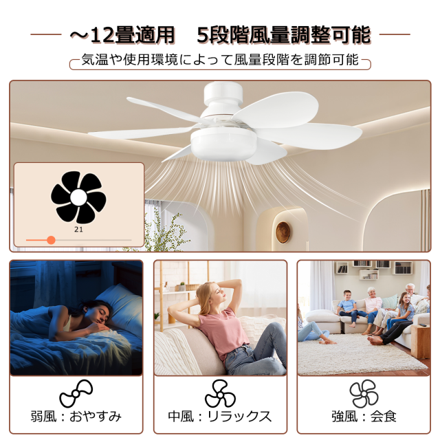 ●5段階の風量調整機能で、快適な風をお好みに合わせて調整できます。