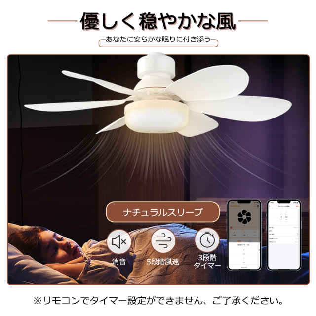 【スマホアプリを使用して、ファン/ライトのオン/オフや明るさの調整、色温度の変更が遠隔で行えます。】
