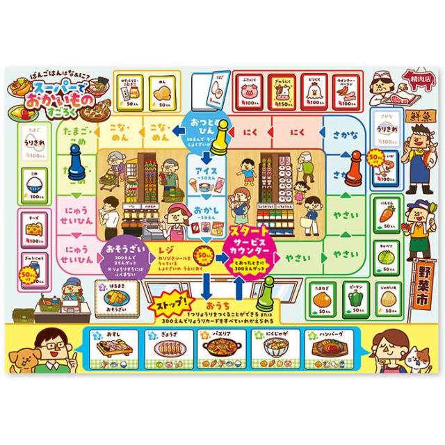 ボードゲーム すごろく ゲーム 食育 スーパー 買い物 買い物ごっこ テーブルゲーム お金 知育 学習 数字 子ども 幼児 幼稚園 保育園 小学生 お正月 ホビー 玩具 おもちゃ オモチャ 脳トレ 景品 イベント プレゼント 暇つぶし 室内