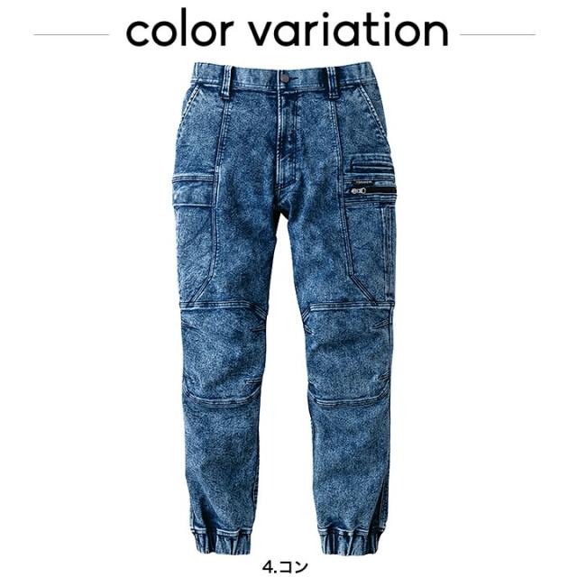 | 説明 特徴 | ストレッチをしっかり効かせたデニムにケミカルストーンウォッシュ加工!! スリムなシルエットのデニムカーゴジョガーパンツ。 普段の着用にも対応いただけます! ●ケミカルストーンウォッシュ加工 ●カーゴポケット(マチ付き) ●左カーゴポケットの上にモバイルポケット付き ●膝ダーツ ●内股ガゼットクロッチ附属 ●後身ベルトループ位置に補強布を使用 ●後裾はフライス仕様 |