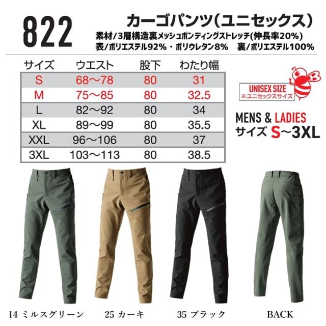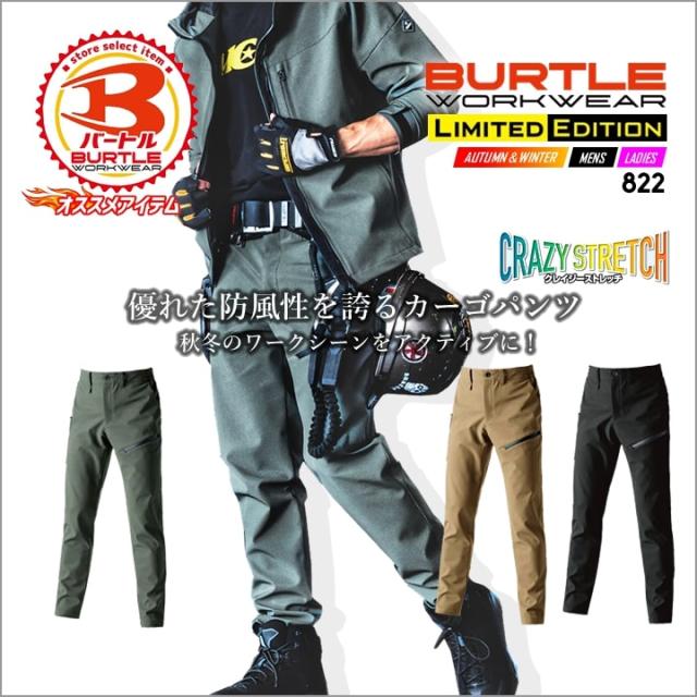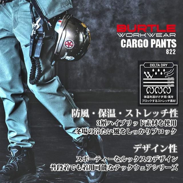 バートル 822 カーゴパンツ 2024年 新作 パンツ ストレッチ 防風 保温 撥水 ズボン 男女兼用 【秋冬】アウトドア スポーツ 自転車 バイク 通勤 通学 作業服 作業着 ユニフォーム BURTLE 3XL