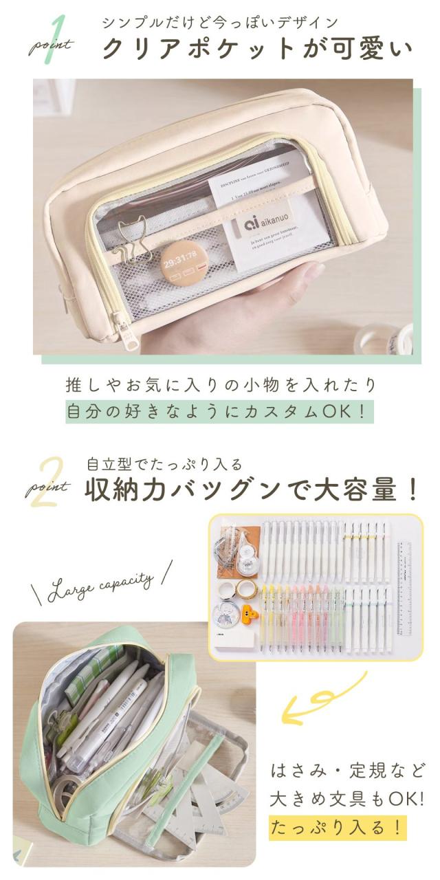 ペンケース/自立/クリアポケット/大容量/マルチケース/かわいい/筆箱/収納/高校生/小学生/中学生/大学生/おしゃれ/透明/可愛い/シンプル/筆記用具/文房具/鉛筆/軽量/シャープペンシル/サインペン/ツールケース/メンズ/レディース/男女兼用/洗面用具/化粧ポーチ/スマホ/充電器/裁縫ケース/筆入れ/小物収納/ふでばこ/ペン入れ/学生/社会人/オフィス/入学祝い/卒業祝い/退職祝い/収納袋/韓国/プレゼント/TN-PCAP/