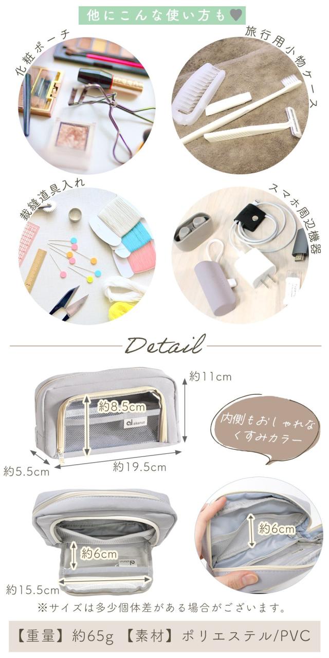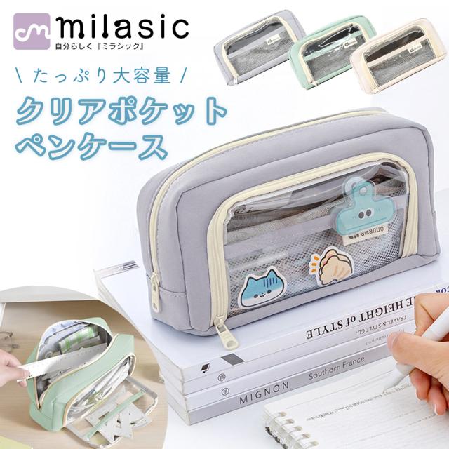 ペンケース 裁縫ケース 大容量 自立 クリアポケット 化粧ポーチ スマホ 充電器 学生 社会人 オフィス かわいい 筆箱 収納 マルチケース ツールケース 洗面用具 MILASIC TN-PCAP