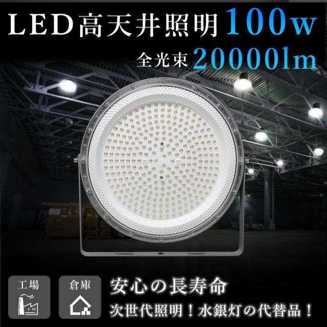 【一年保証 PSE認証済み】高天井用 照明 LEDハイベイライト 100W 1000W相当 超爆光20000ルーメン 新型UFO型 工場用 LED高天井灯 高天井用LED照明 LED水銀灯 LED作業灯 ハイベイランプ LED高天井照明器具 電源内蔵型 100V/200V 色選択 UFO型LED照明器具 広角120度 展覧会 倉庫