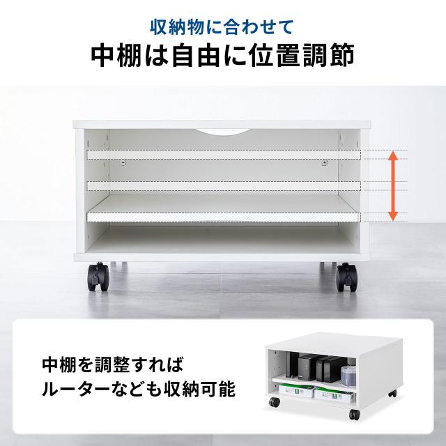 ●中棚付で紙や印刷用品を整理して収納が可能です。また、収納物に合わせて位置調整が可能です。