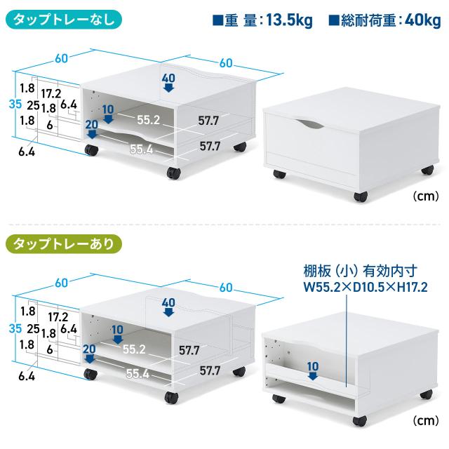 プリンタ台 プリンタラック キャスター ボックス 高さ35cm 幅60cm 奥行60cm タップ受け付[100-LPSF019W]