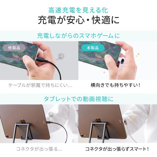 ⇒ご購入の前にご確認下さいPD電力表示機能が付いた人気のUSB Type-CケーブルのL字コネクタタイプ。シリコンケーブルのため、しなやかでコンパクトになり取り回しがしやすい。【WEB限定商品】