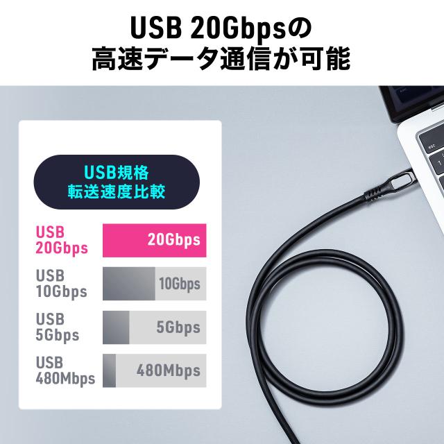 ●USB 20Gbps(USB4 Gen2×2)の「SuperSpeed+USB(転送速度 20Gbps)」に対応した高品質のケーブルです。