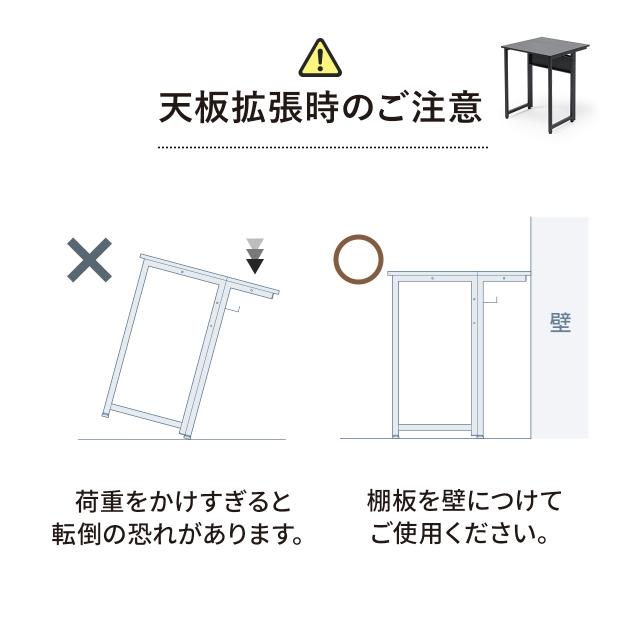 ※サブテーブルを天板と同じ高さにして天板を拡張する場合は、壁際に配置するなど転倒にご注意ください。