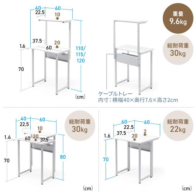 ■サブテーブルの天板からの高さ:約10/40/45/50cm