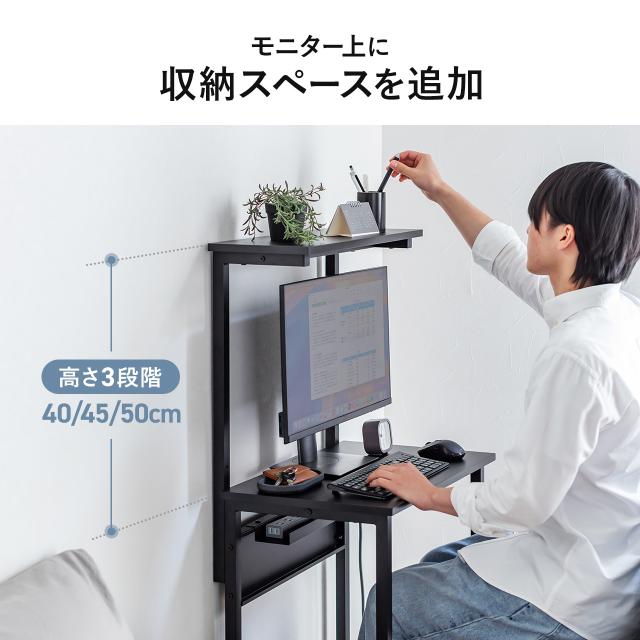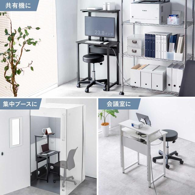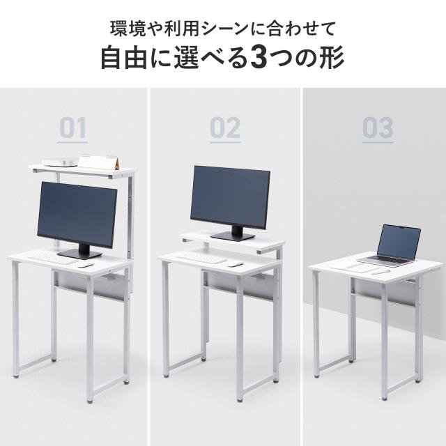 パソコンデスク 3WAYパソコンラック サブテーブル付き 幅60cm 奥行40cm 総耐荷重30kg コンパクト オフィス 会議室 ワークデスク ブラック ホワイト[100-DESKF060]