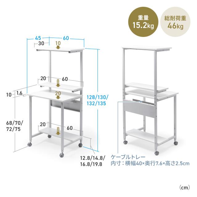 ■カラー:ブラック 100-DESKF061BK ホワイト 100-DESKF061W■サイズ:約幅60×奥行45×高さ128〜135cm