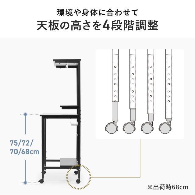 ●シンプルでコンパクトなPCラックです。●天板の高さを4段階で調整することができます。