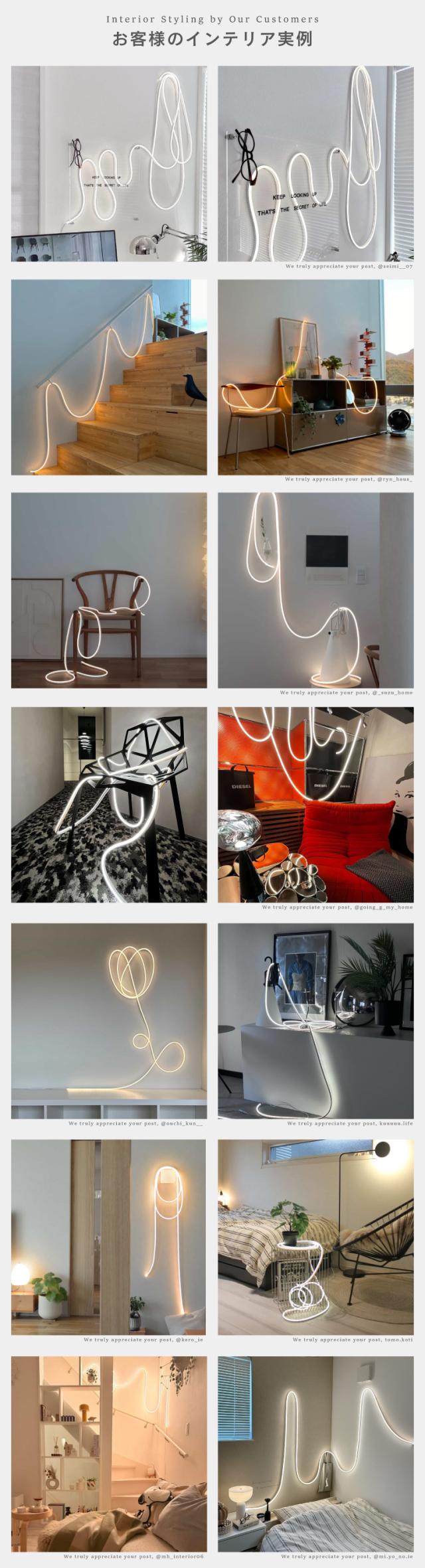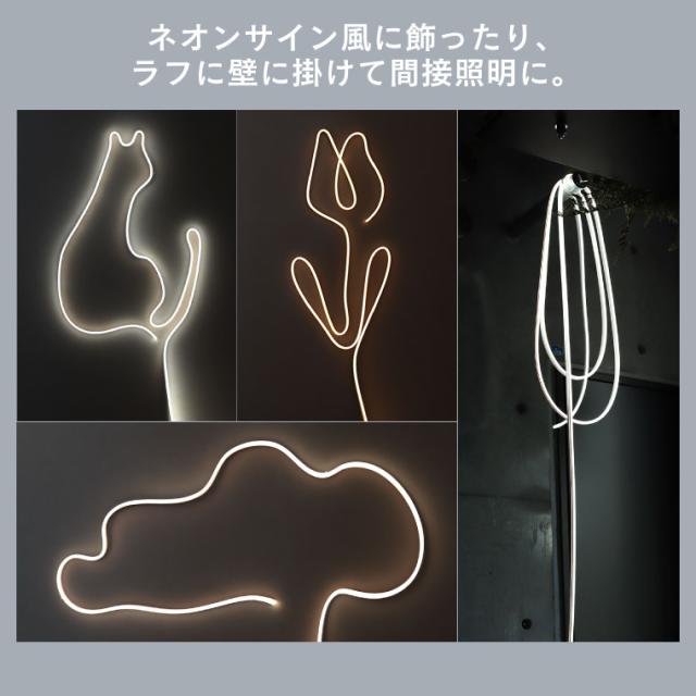 棚下やカウンターなどの間接照明としてはもちろん、壁に吊るしたり、ネオンサイン風照明としても楽しめる