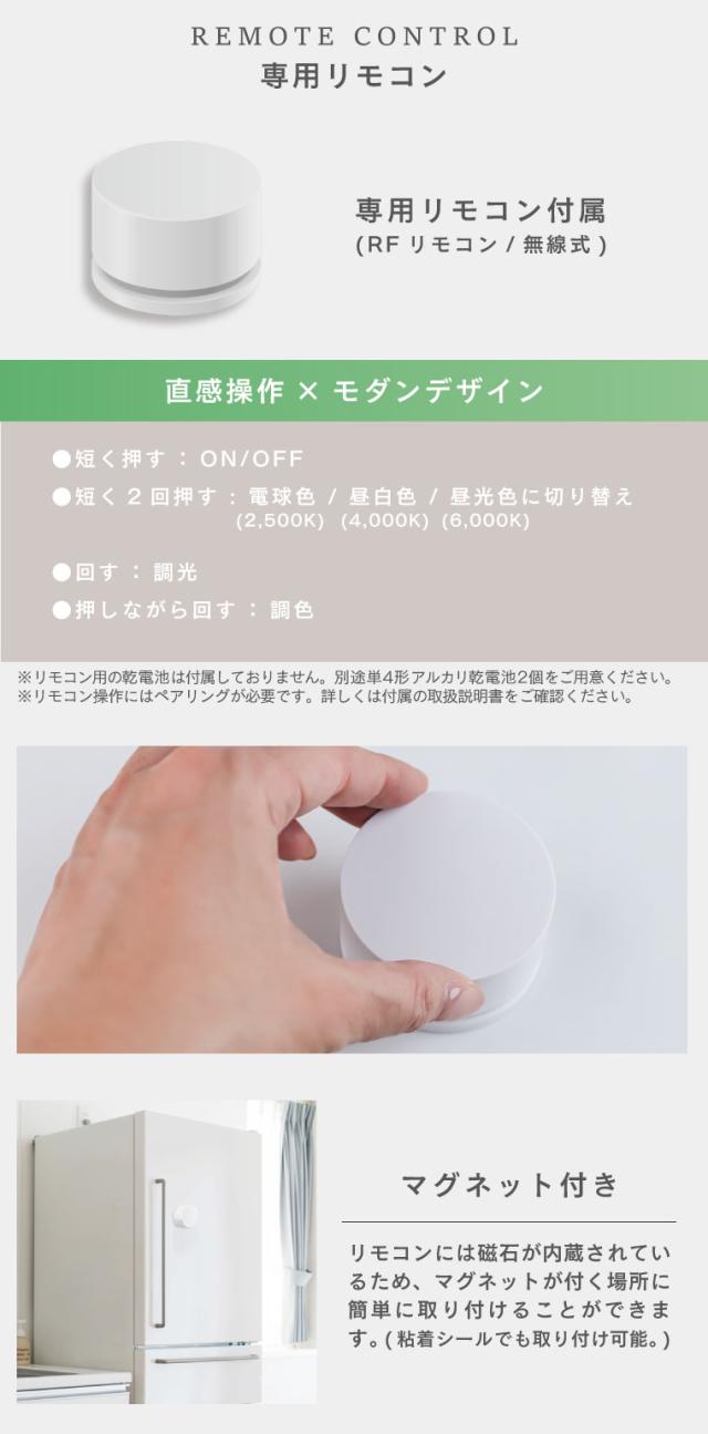 付属のリモコンで簡単に冷暖調色・調光が可能。