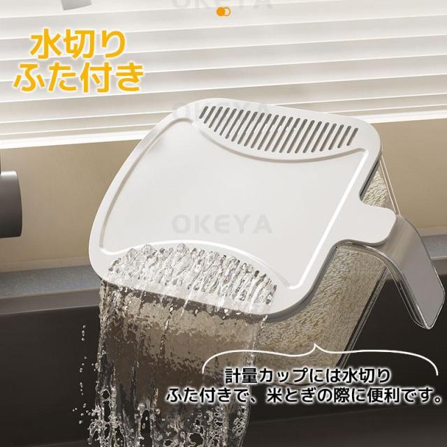 「計量カップ付き」水切りフタ付きで洗米も簡単です。