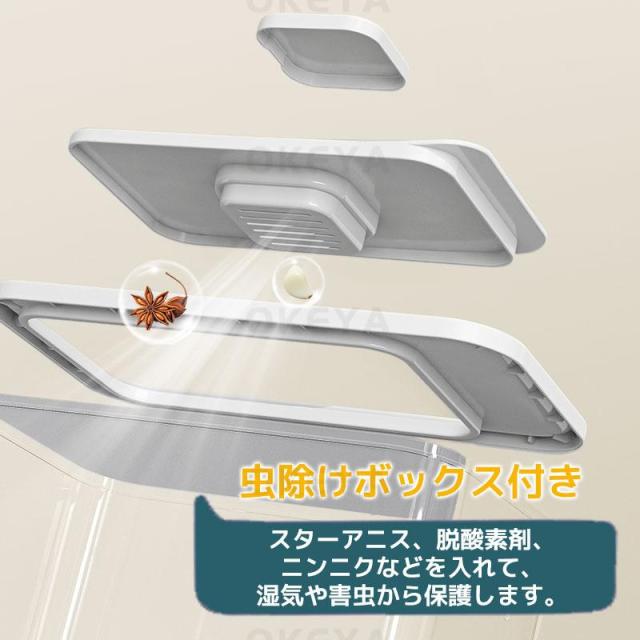 「虫除けボックス付き」スターアニス、脱酸素剤、ニンニクなどを入れて、湿気や害虫から保護します。