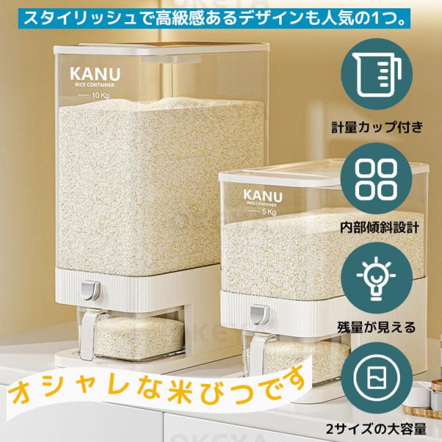 米びつ 大容量 収納 5kg 10kg お米収納 2カラー ライスストッカー 米櫃 スリム ボタン押しタイプ コンパクト 省スペース 米びつ 無洗米対応 米びつケース 台所 キッチン
