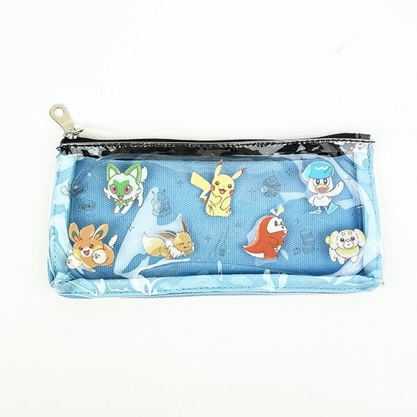 ポケモン大集合♪表面は中身の見えるクリアタイプのスリムポーチです。ペンポーチとしても使えます◎