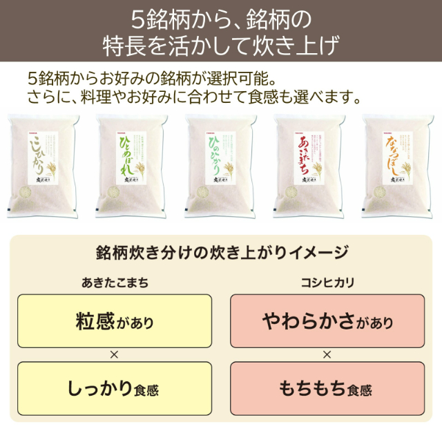 ・お好みの食感で炊き分け5通り+銘柄炊き分け5銘柄