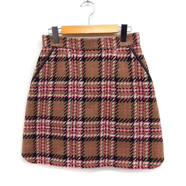 【中古】リランドチュール Rirandture ツイード 台形 スカート ミニ チェック 2 ブラウン 茶 /FT30 レディース