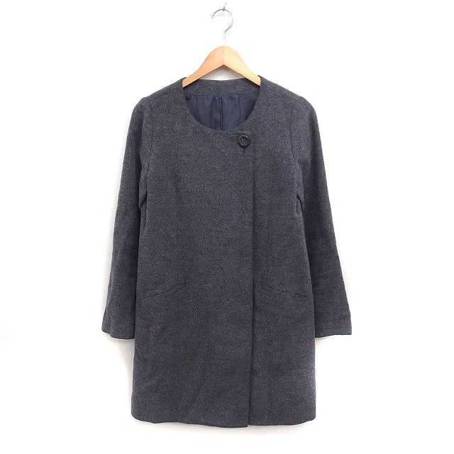【中古】ホワイトジョーラ WHITE JOOLA ノーカラー コート アウター ミドル丈 アンゴラ混 無地 9 グレー 灰 /FT43