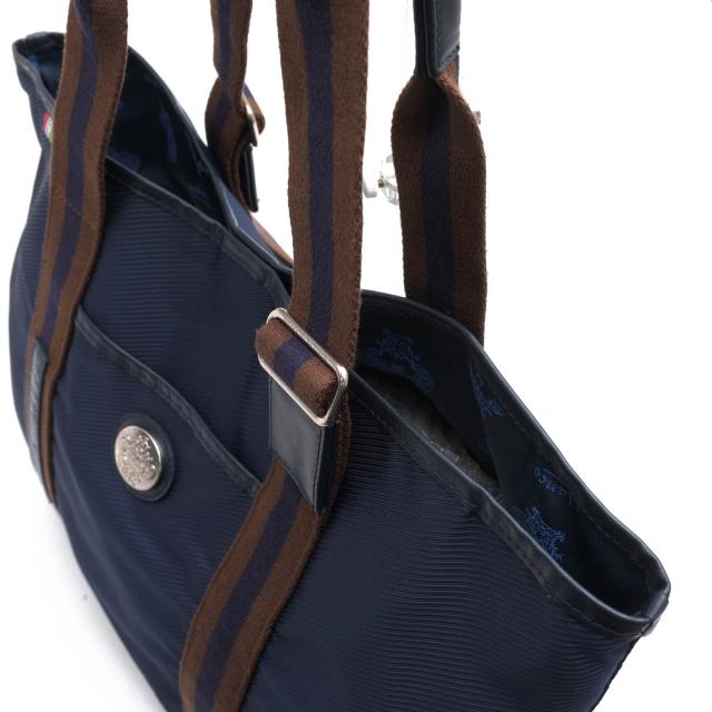 高級感あふれるリモンタ社製ナイロンと上質なイタリアンレザーを採用し、A4サイズが収納可能な丁度いいサイズ感のトートバッグ。リモンタ社のナイロンはラグジュアリーブランドも使用していることで有名な素材。独特の艶と張りが特徴で、美しい素材感と滑らかな手触りが特徴です。フロントには、ブランドアイコンプレート金具がデザインされています。メイン収納は、マグネット留めの開口部で、内部には便利なファスナーポケットが備わっています。また、調節可能なハンドルにより、さまざまなシチュエーションに合わせた持ち方が可能です。