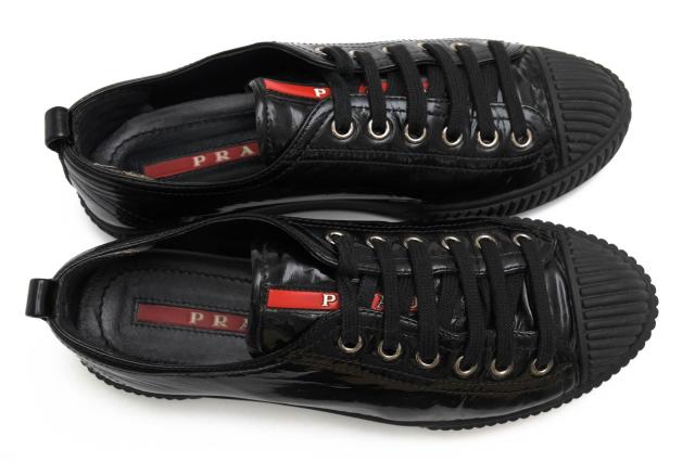 ○プラダ PRADA 牛革 ローカットスニーカー 3E 5876 Patent Lace Up リネアロッサ Linea Rossa レディース 【中古】 中古